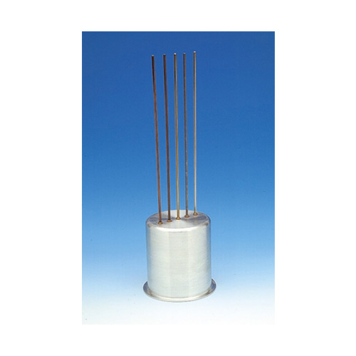 A copper cylindrical vessel fitted with 5 different rods of copper, brass, iron, aluminium, & zinc.