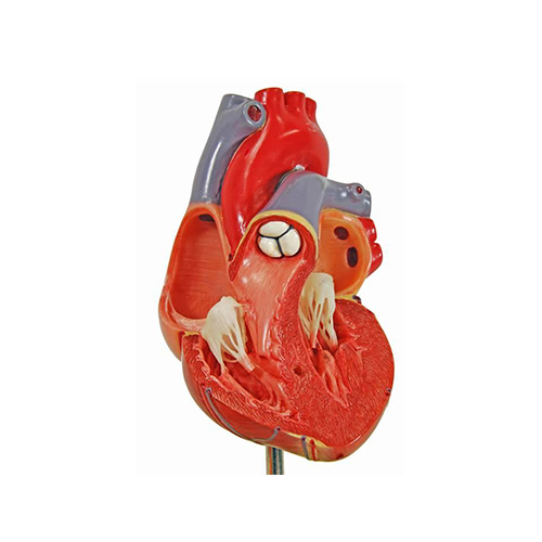 Human Heart model dissectible in 3 parts, showing, Bicuspid and tricuspid semilunar and sigmoid values on base, with key card.